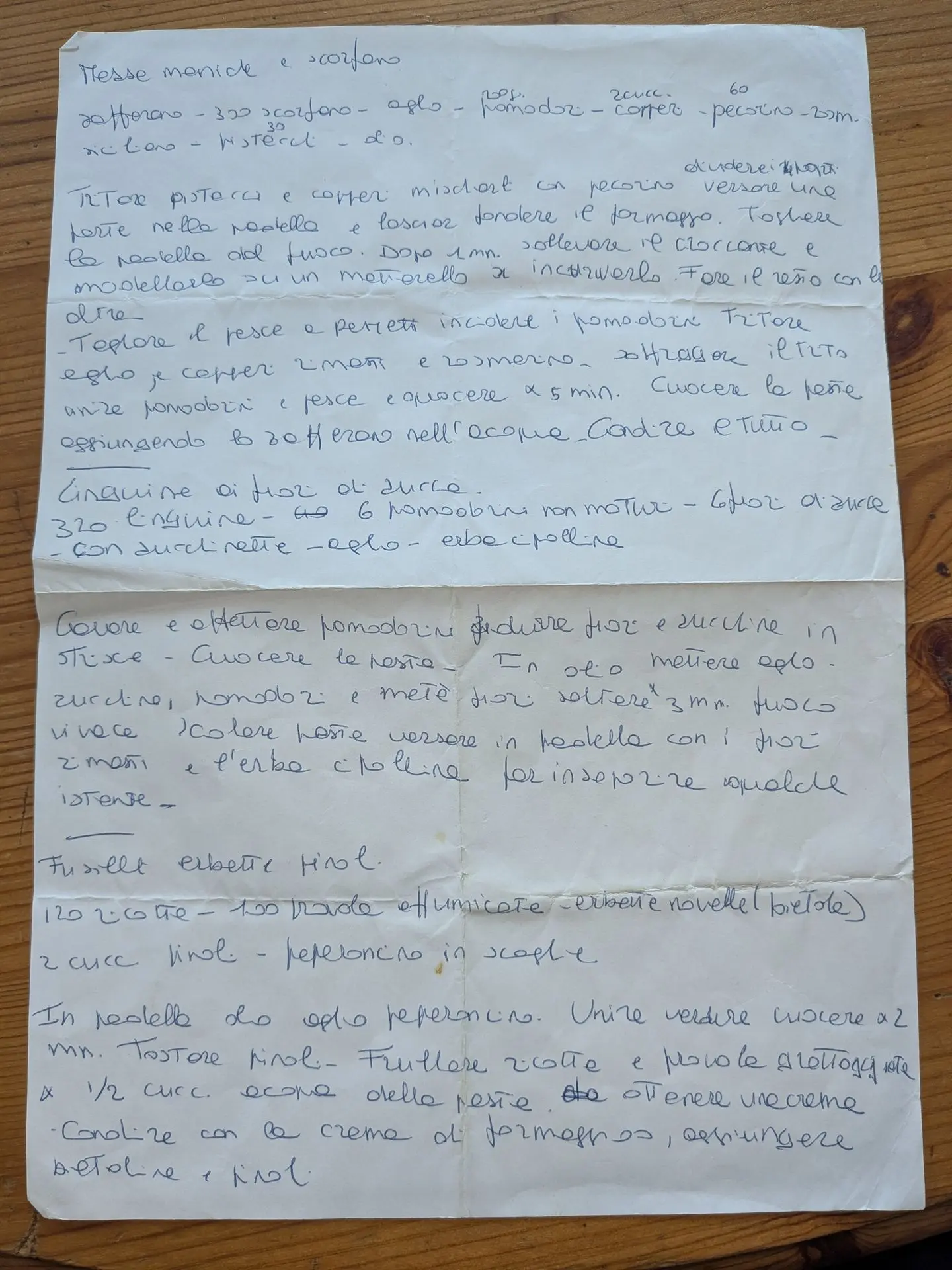 zafferano - 320 scorfano - aglio - 200gr pomodori - 2cucc. capperi - 60gr pecorino rimano